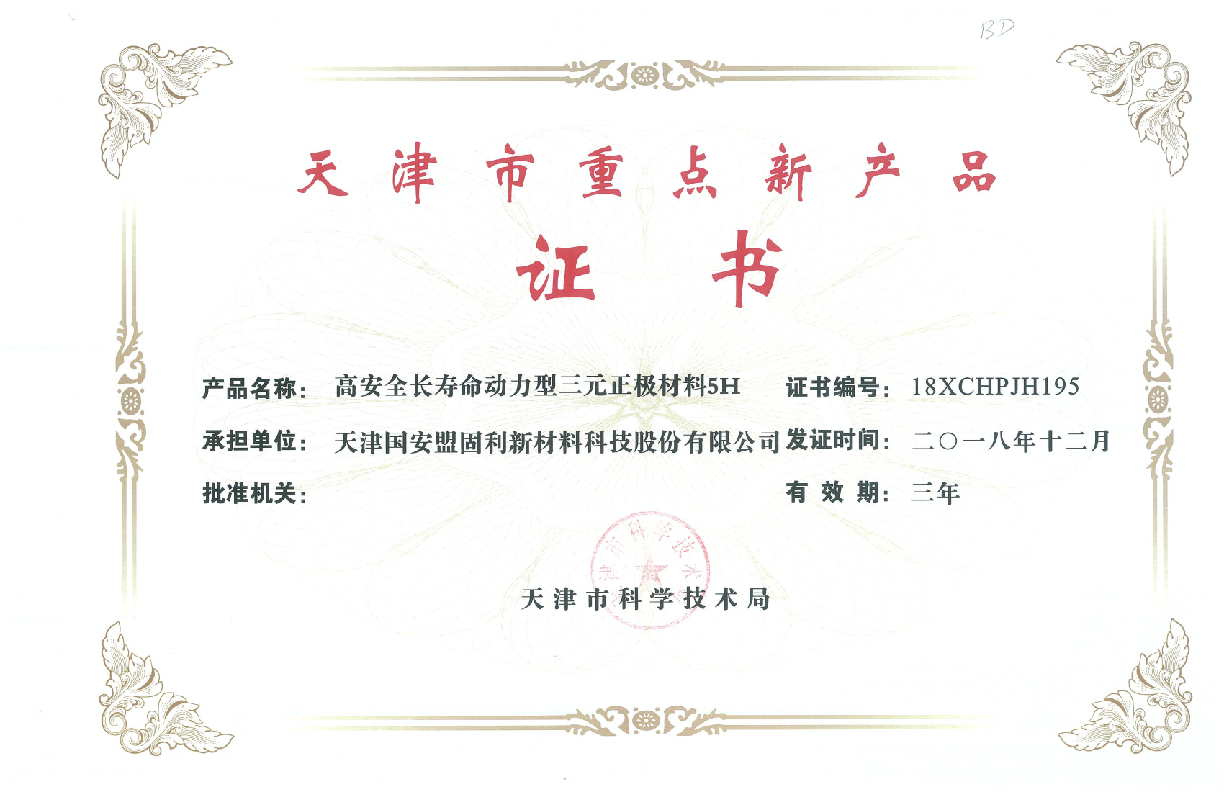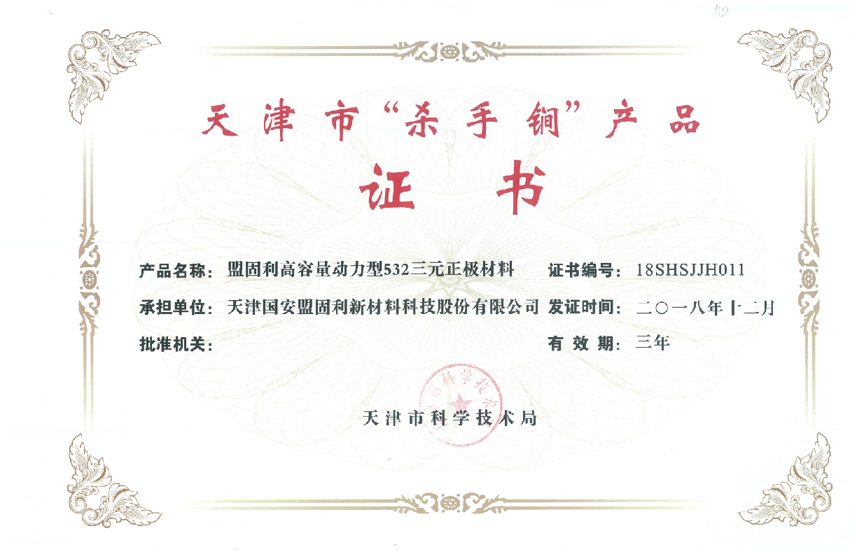 After years’ development, Tianjin Mengguli is one of the leading suppliers of high-end cathode materials for lithium-ion battery, with competitive advantages including innovative technology, superior-quality products, and reputable brand. Tianjin Mengguli is rewarded for plenty of governmental or industrial honors, like State-level Hi-tech Enterprise, Tianjin Science and Technology Enterprise, Tianjin Leading Science and Technology Enterprise and Environment-friendly Manufacturer, and it also got a number of certifications, including the ISO9001 System, ISO14001 Environmental Management System, OHSAS18001 Health & Safety Management System, and IATF 16949 Automotive Quality Management System.